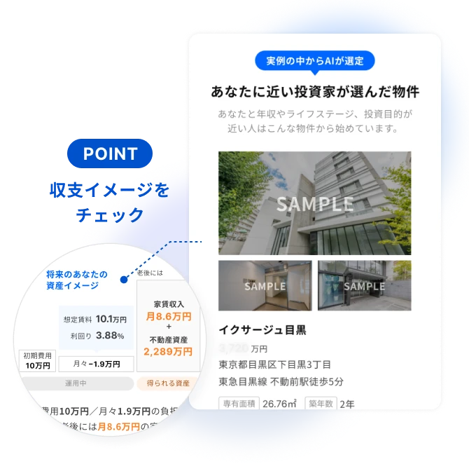 あなたに似た投資家が実際に選んだ物件や、