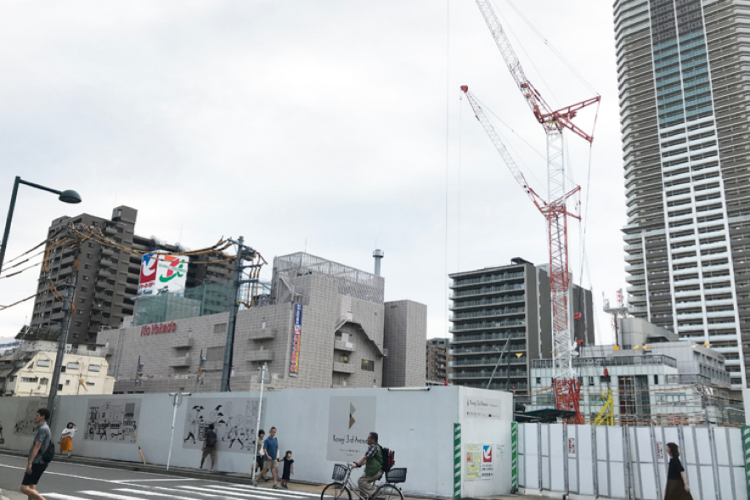 武蔵小杉を実際に訪れると、この街の人気、勢いはまだまだ続きそうに感じます。下の写真のように中心部での新たなマンション建設も進められています(2018年7月撮影)。