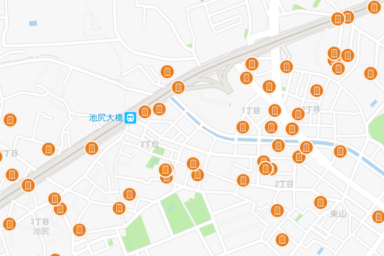 最後に、「池尻大橋駅」周辺の中古マンション市場をみてみましょう。幹線道路の246号線沿いには、築浅のマンションが目立ちます。住宅街の池尻2~3丁目、東山1~3丁目の周辺には20年以上の築古マンションも数多くあります。築浅、築古どちらを狙っている方にも池尻大橋駅周辺はおすすめです。