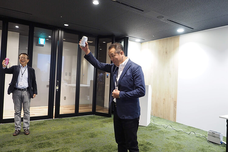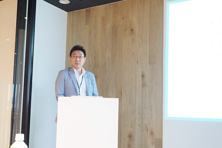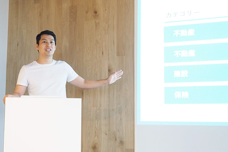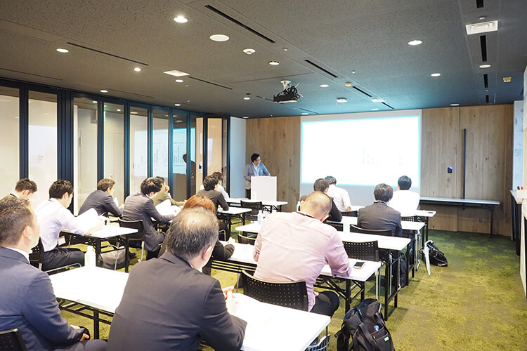 はじめに、忙しい現場がある中お集まりいただいた施工に関わる方々へ、RENOSYを提供するGA technologies代表の樋口から挨拶がありました。リノベーション事業への今後の取り組み構想、そしてリノベーション事業以外の会社についても知っていただこうと、目指すビジョンなどを話しました。