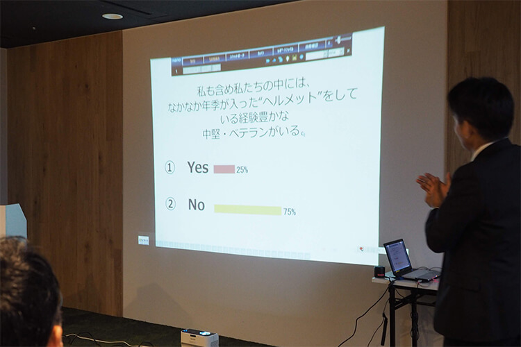 続いて、RENOSYの設計と施工を担当する前田より、工務店のみなさまに安全対策および安全への意識について、レクチャーを実施しました。