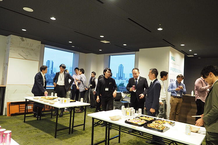 2時間ほど勉強した後は、乾杯と軽食でエネルギーを補充し、親睦を深める会を開催しました。日頃、現場でそれぞれが忙しく働いていると話もできないこともしばしば。この日はつもる話もできたのではないでしょうか。