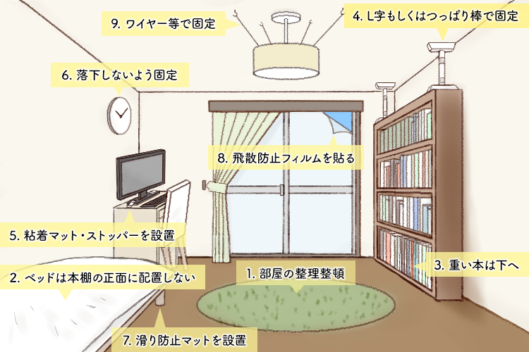 なかなか実行できないことのひとつに「お部屋の地震対策」がありませんか?部屋を見回してみて、例えば家具の配置を変えるなど、今日からでもできることからはじめませんか。