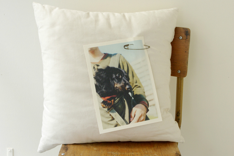 プリンターで印刷できる市販のキャンバスペーパーにプリントした写真を、ラフに安全ピンでクッションに付けて飾るアイディアです。紙の写真でも可能ですが、統一感を出したい場合は、クッションが布製なので同じく布のようなペーパーにプリントした方が良いでしょう。キャンバスペーパーは超厚口のため、プリンターの仕様上、使えない機種もあるのでご注意を。