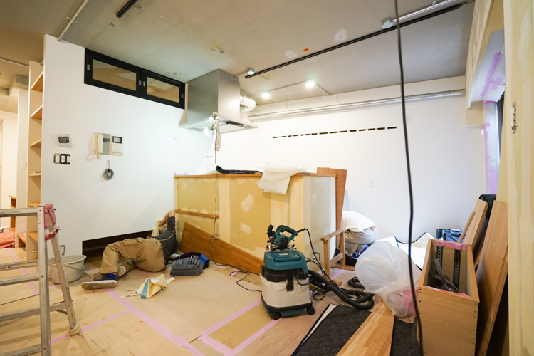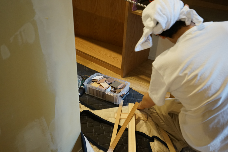 今回訪ねたのは、じつはまだ工事中のお部屋。「造作家具」の取り付け工事が行われると聞いて見学に伺ったのですが、そこは真剣勝負の世界でした。