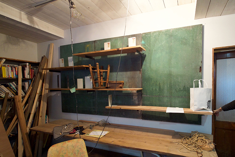 自分たちの思い描くイメージの空間を作り上げるため、もともとこの場所にあった木材や家具にプラスして、古材やタイル、左官材料などを購入。