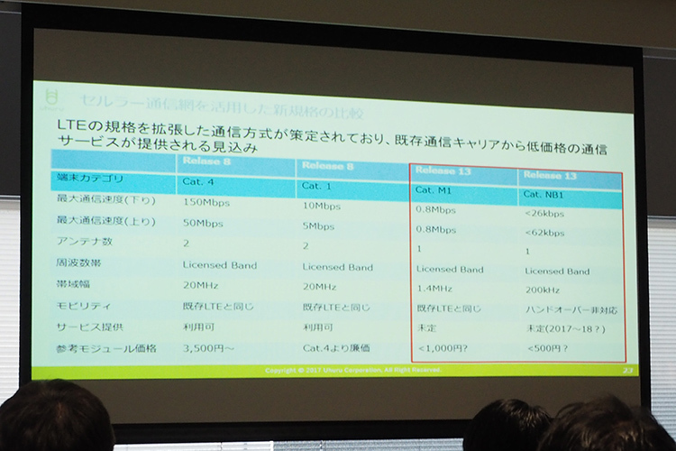 1兆個とも言われるインターネットに繋がるモノが増えることによって、問題になるのは通信費。速度の遅い、安い規格も出てきています。