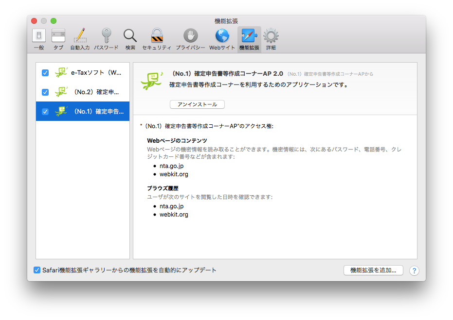 OSは最新バージョンだし、推奨環境に入っている。問題はSafariのバージョン。Safariはブラウザ単体でバージョンアップのコントロールができない仕様になったため、打つ手がない。マイナンバーカード方式はダメだ、締め切りは明後日だ、と、すぐに「ID・パスワード方式」に切り替えました。