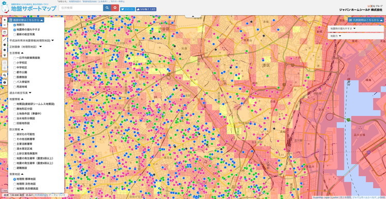 1. 地盤サポートマップ:地震、液状化、浸水、土砂災害に対するリスク
