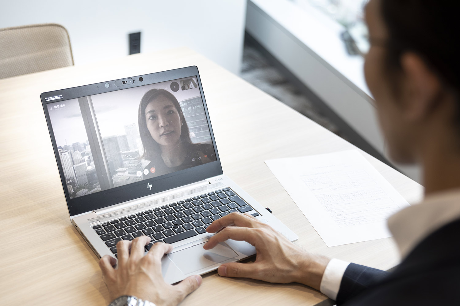 - 書面の記入確認をカメラ越しにする事