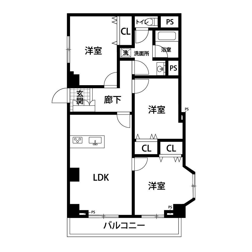 一部分が斜めのお部屋は、内部はこのような感じです。