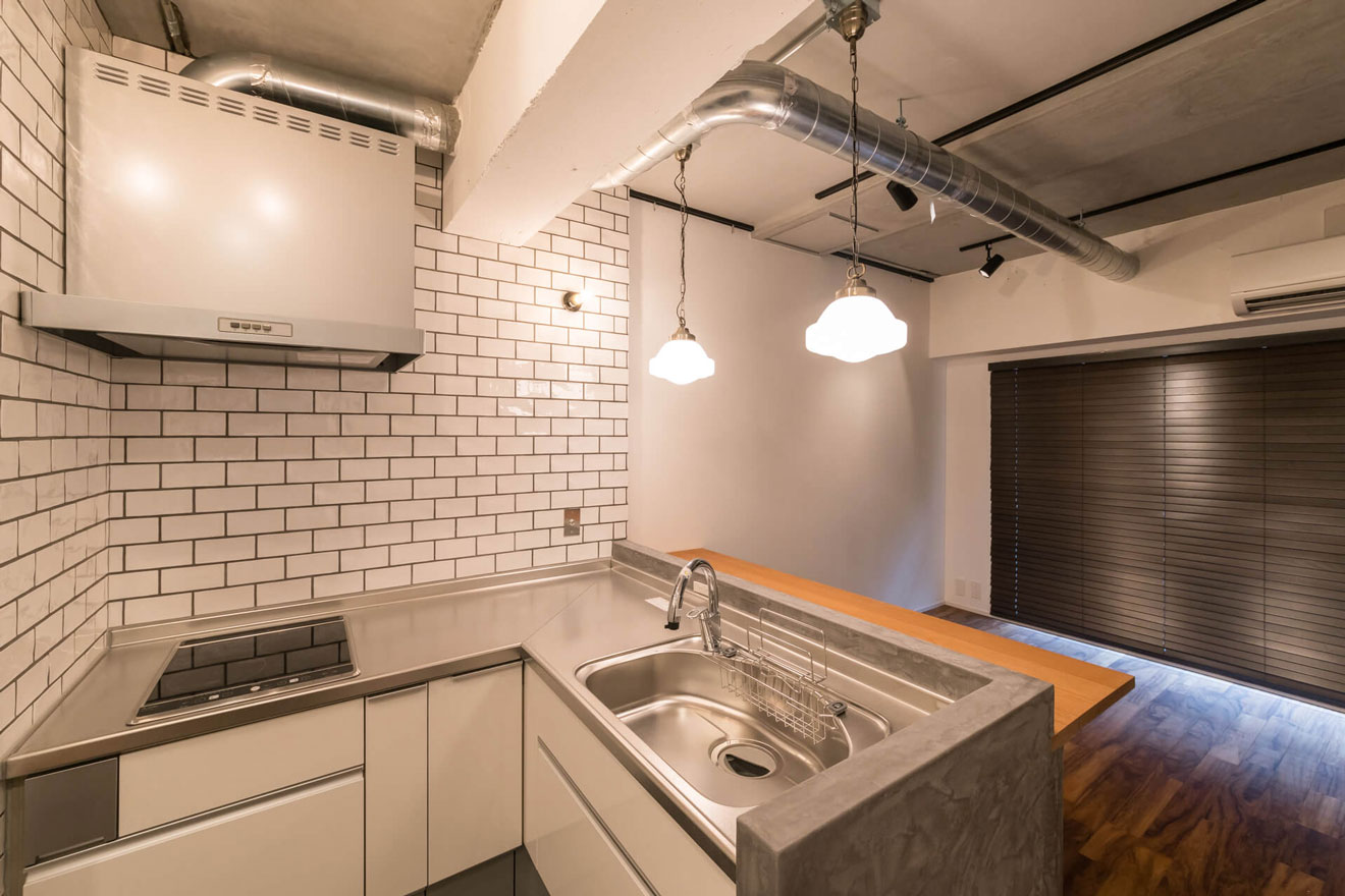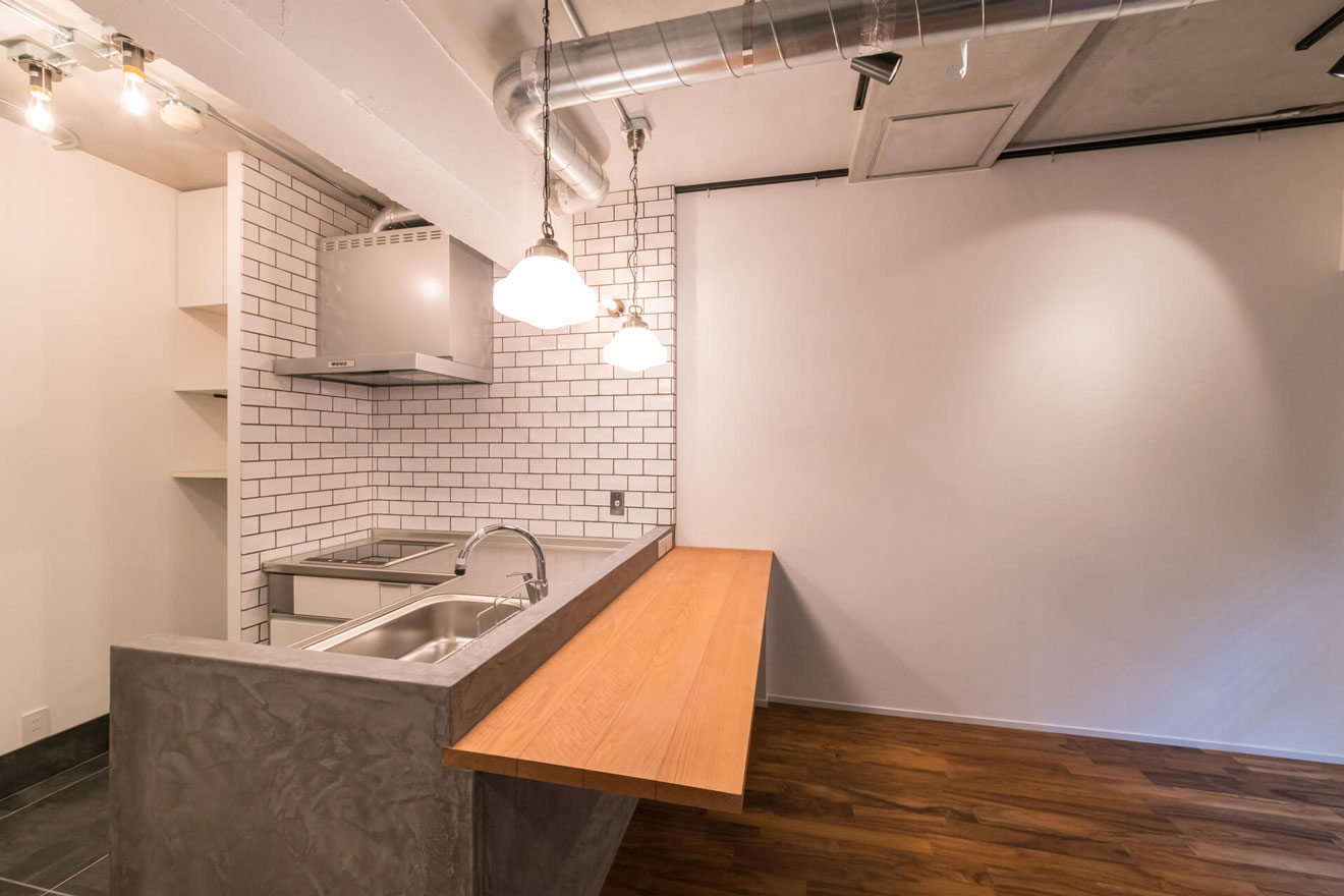 カウンターも取り付け、キッチンをより身近に感じられる造りに。