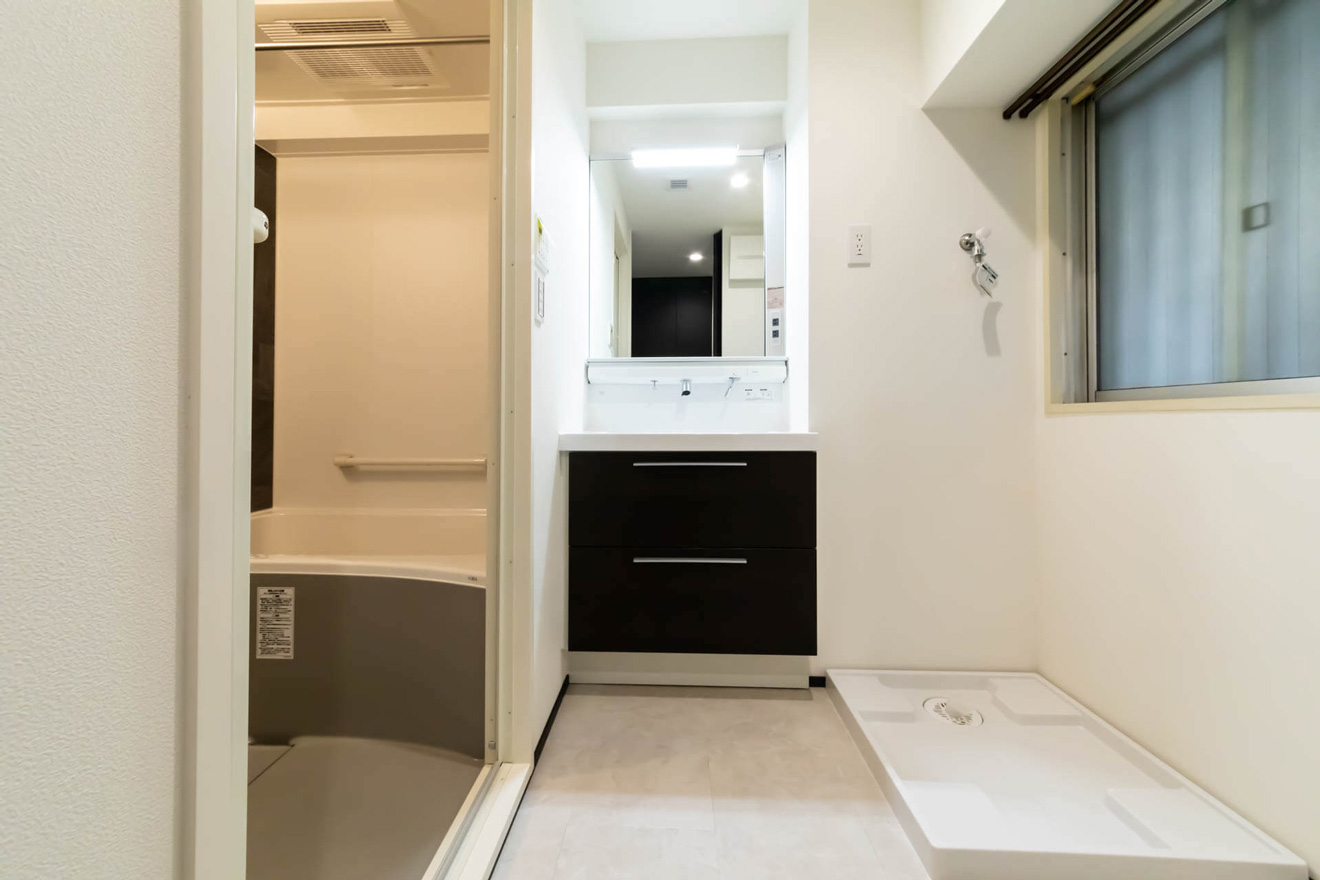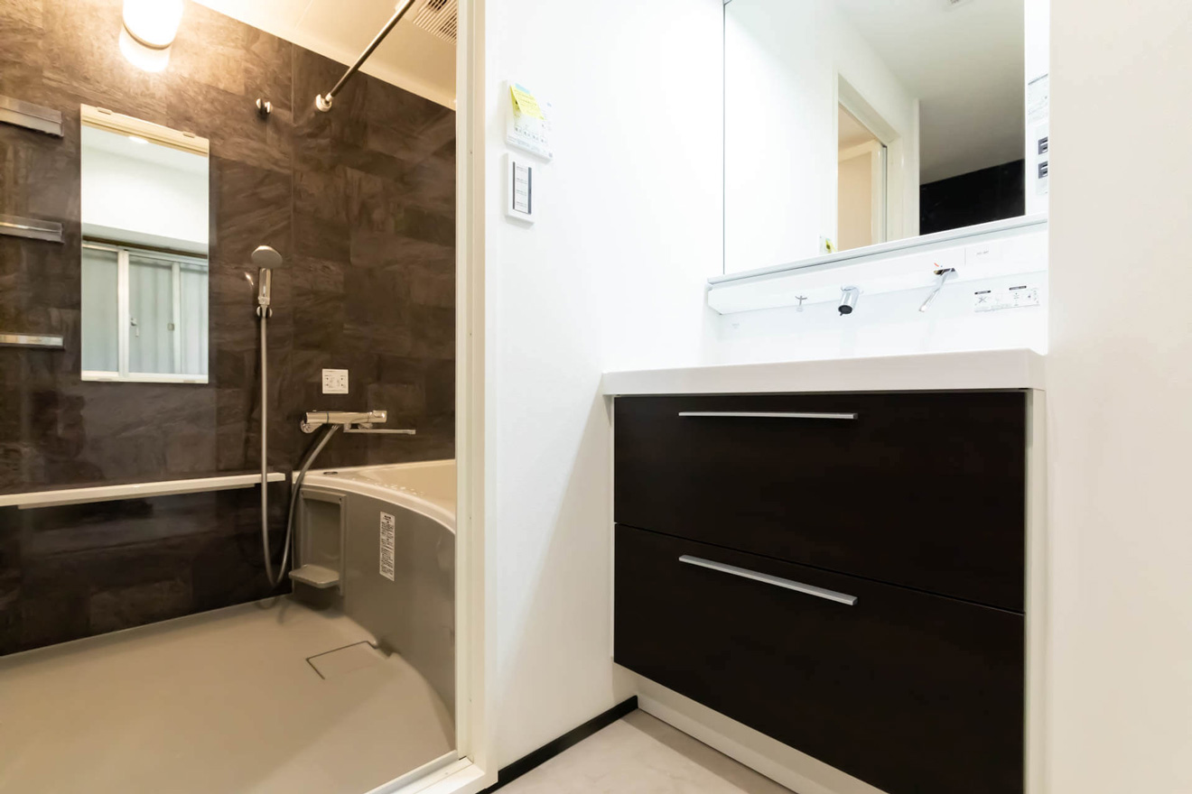 お風呂でゆったりできるよう、脱衣スペースも贅沢にとりました。疲れもしっかり取れます。