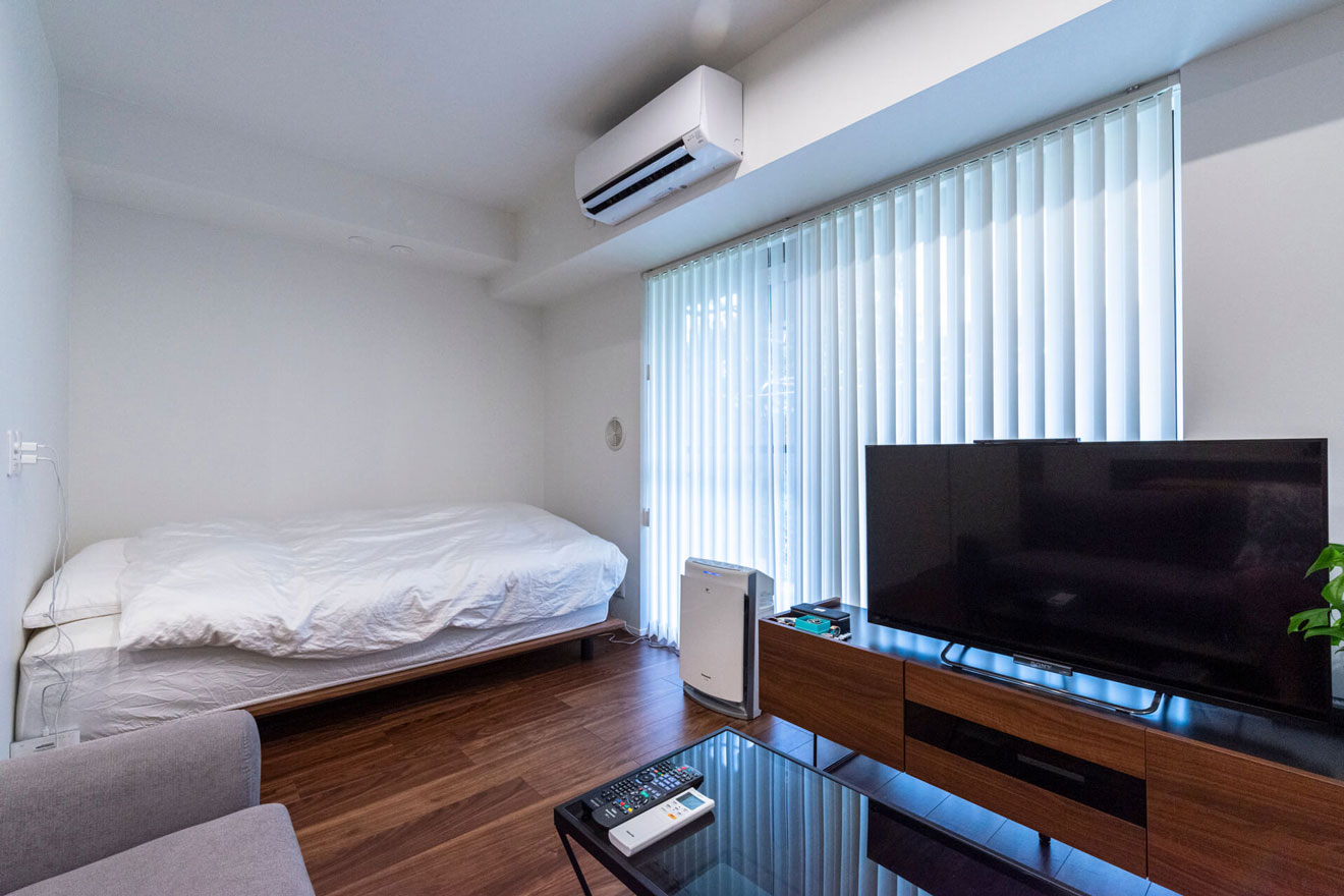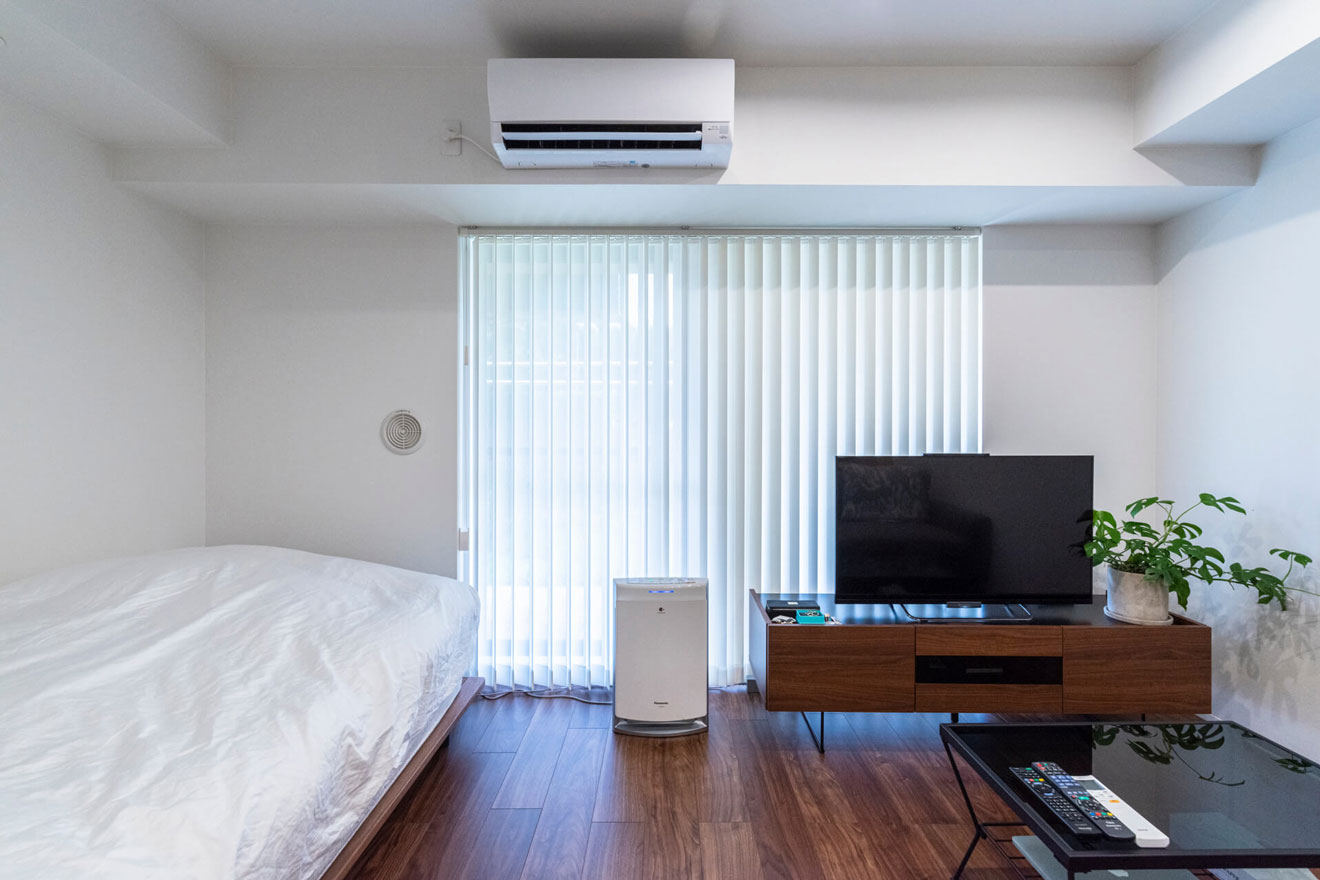 リノベーションしたことで、エアコン配管の出っぱりもすっきりと収まりました。
