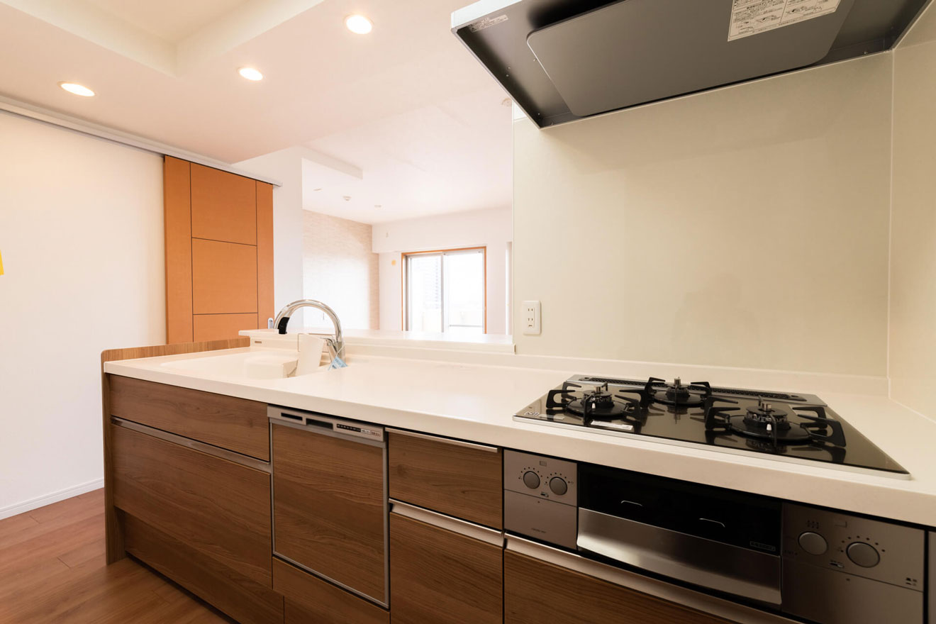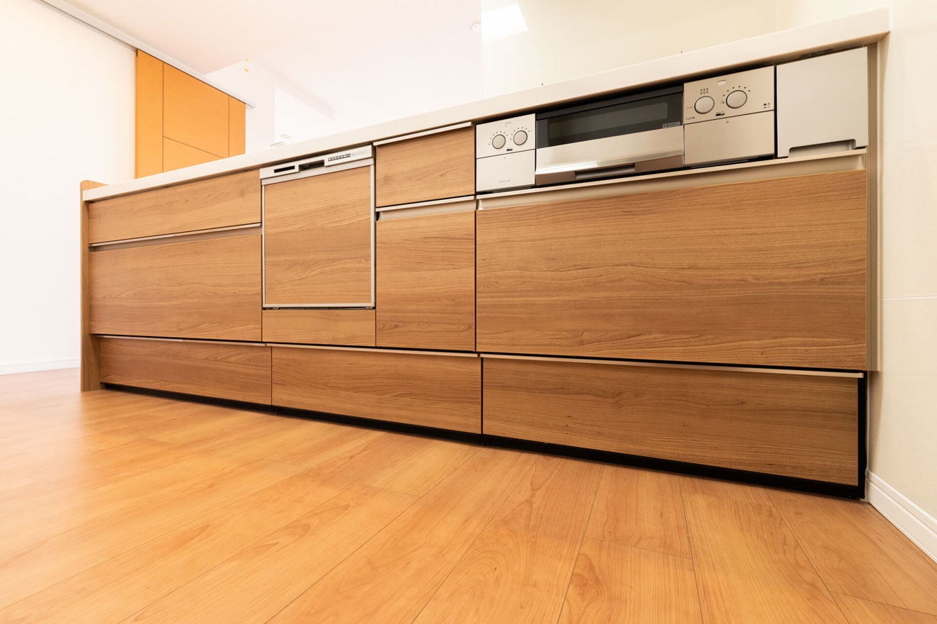 キッチンは吊り戸棚をなくして、開放感をプラスしました。