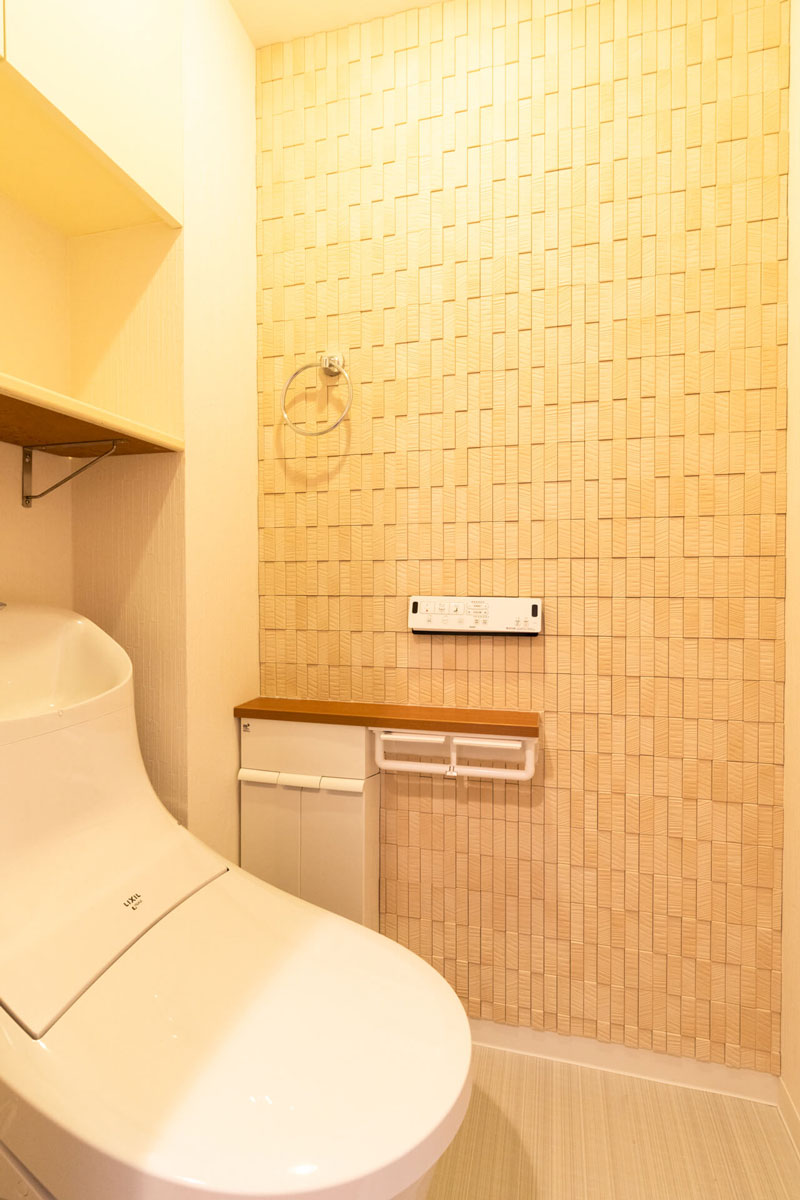 例えば、状態のよかった部屋を仕切る建具はそのまま利用。一方、リビングやトイレの壁はエコカラットを使用して、キッチン・お風呂の設備も新しくしました。