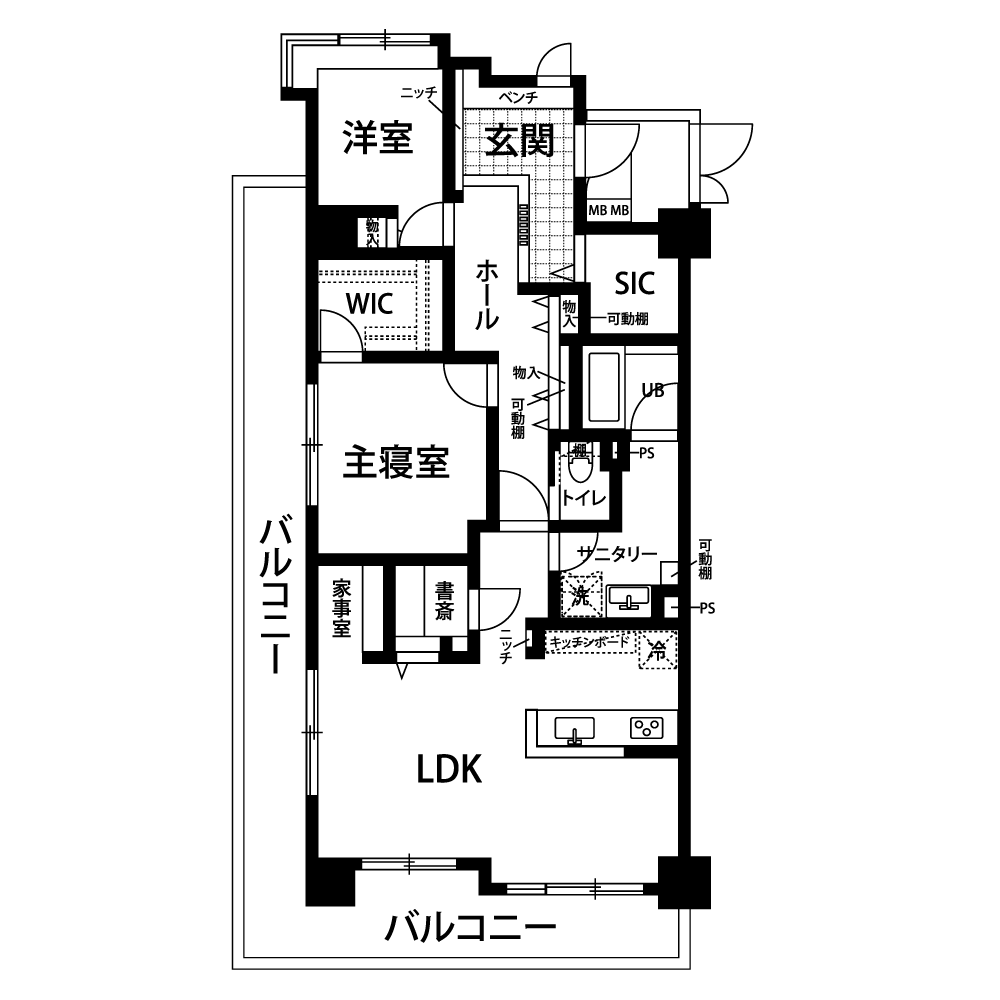 | 月支払い | 12.8万円(管理費、修繕費込み) |