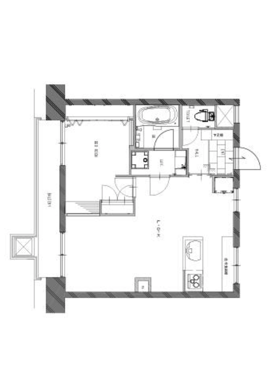 3DKだった間取りは贅沢に1LDKにリノベーション。将来のライフスタイルの変化にも対応できるよう、2LDKにも簡単に間取りが変更できるように設計しています。