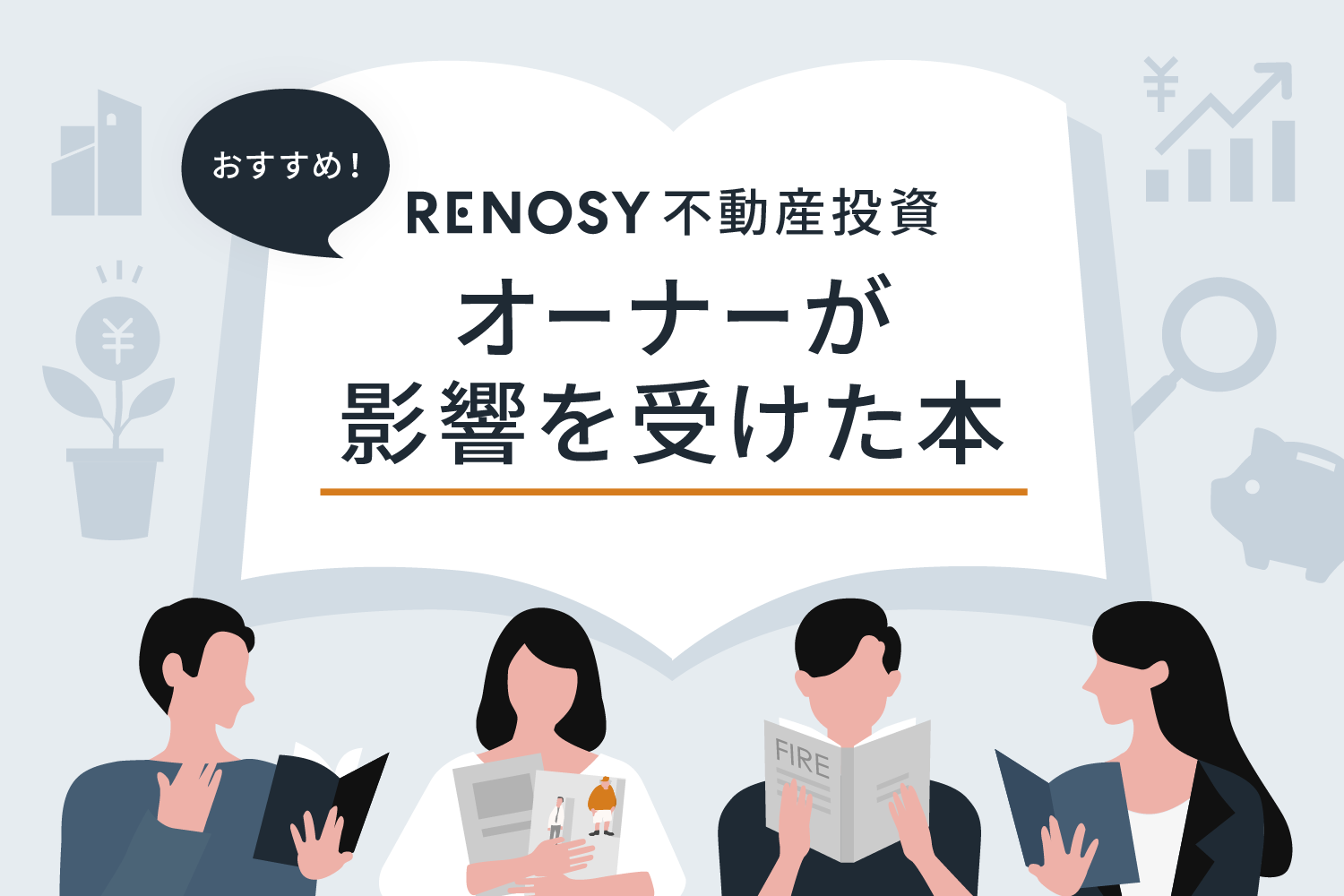 RENOSY 不動産投資を始められた方は、始めるまでにどのような情報を手に入れて、影響を受けたのか。「RENOSY 不動産投資 オーナーインタビュー」で語っていただいた中から、今回は本をピックアップしてご紹介します。
