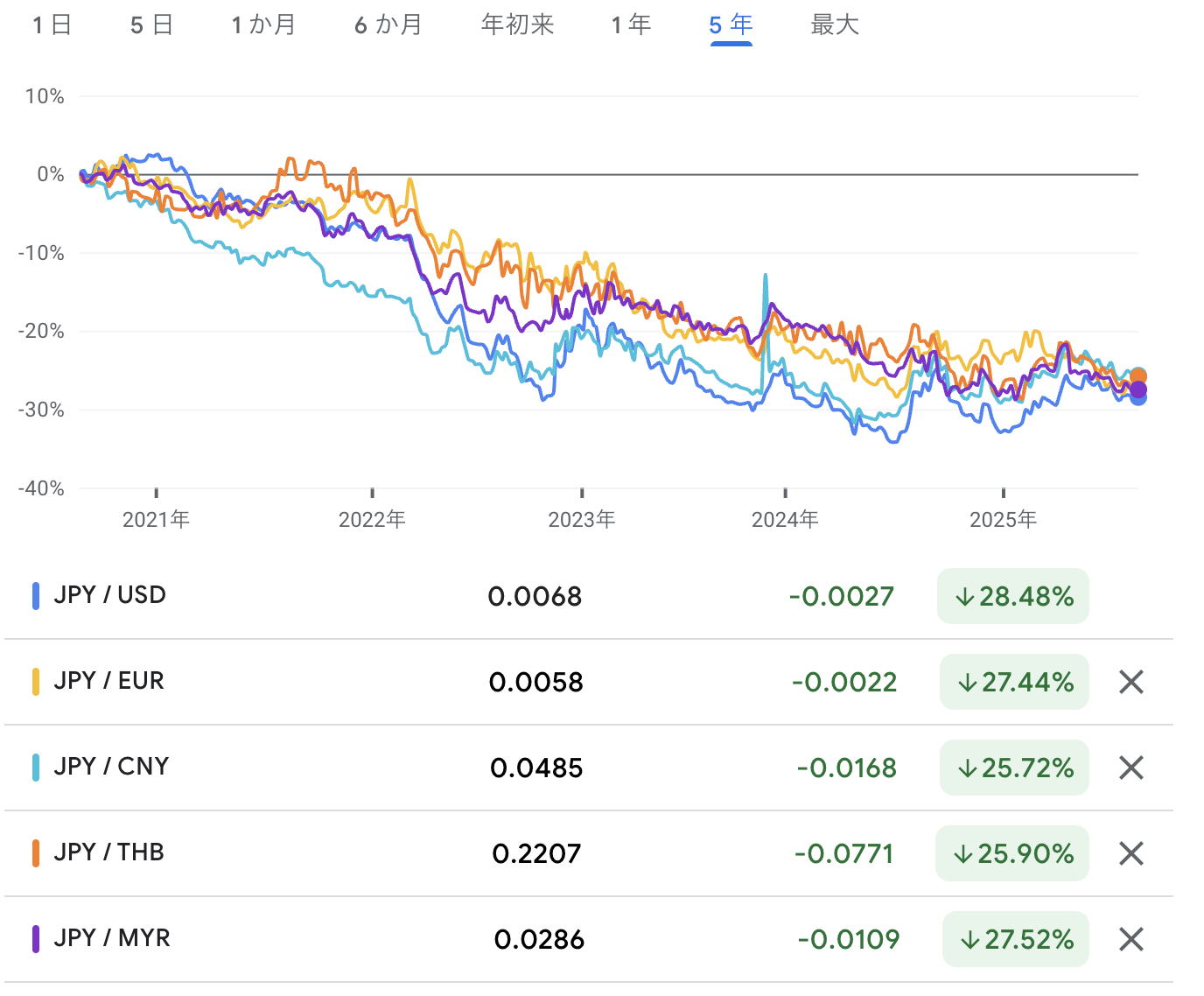 2024年3月にマイナス金利政策が解除され、段階的に金利が上昇しています。しかし、まだ諸外国と比較すると低金利の状態が続いていることで金利差を中心とした円売りも続いており、世界各国の通貨に比べ円の価値が下がったままという可能性もあります。円建てで資産を保有していることは、それ自体が為替変動に伴う資産の目減りリスクを抱え続けるといえるかもしれません。