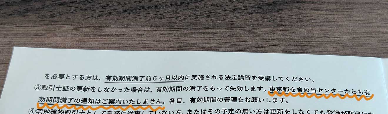 届いてすぐ開封はしました。しかし中身の書類に軽く目を通しただけでは「5年で宅建士証の期限が切れる」ことは、脳内で処理できていませんでした。