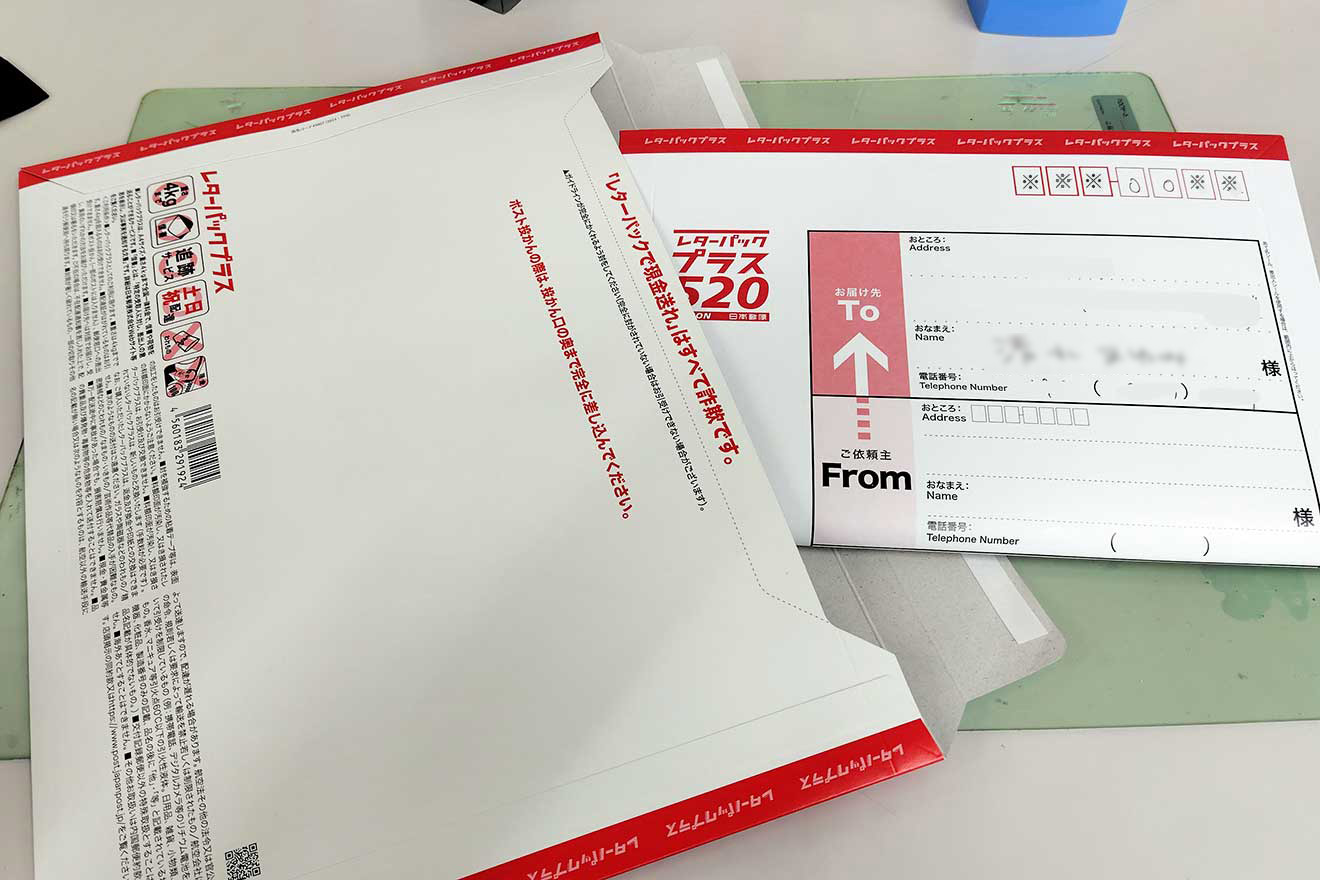 今までの宅建士証と新しい宅建士証の交換です。交換方法は、配達記録が残るようにと、レターパックプラスか簡易書留が指定されていました。家にレターパックプラスのストックが1枚あったので、それで送ることにしました。