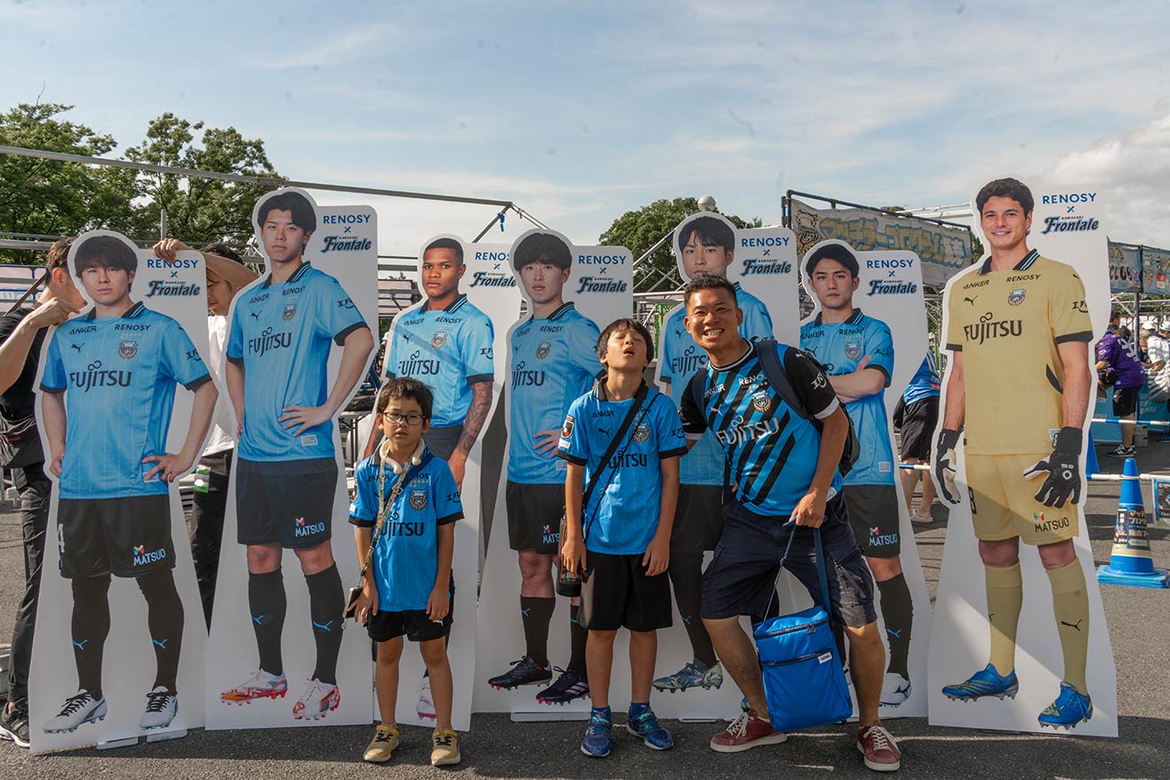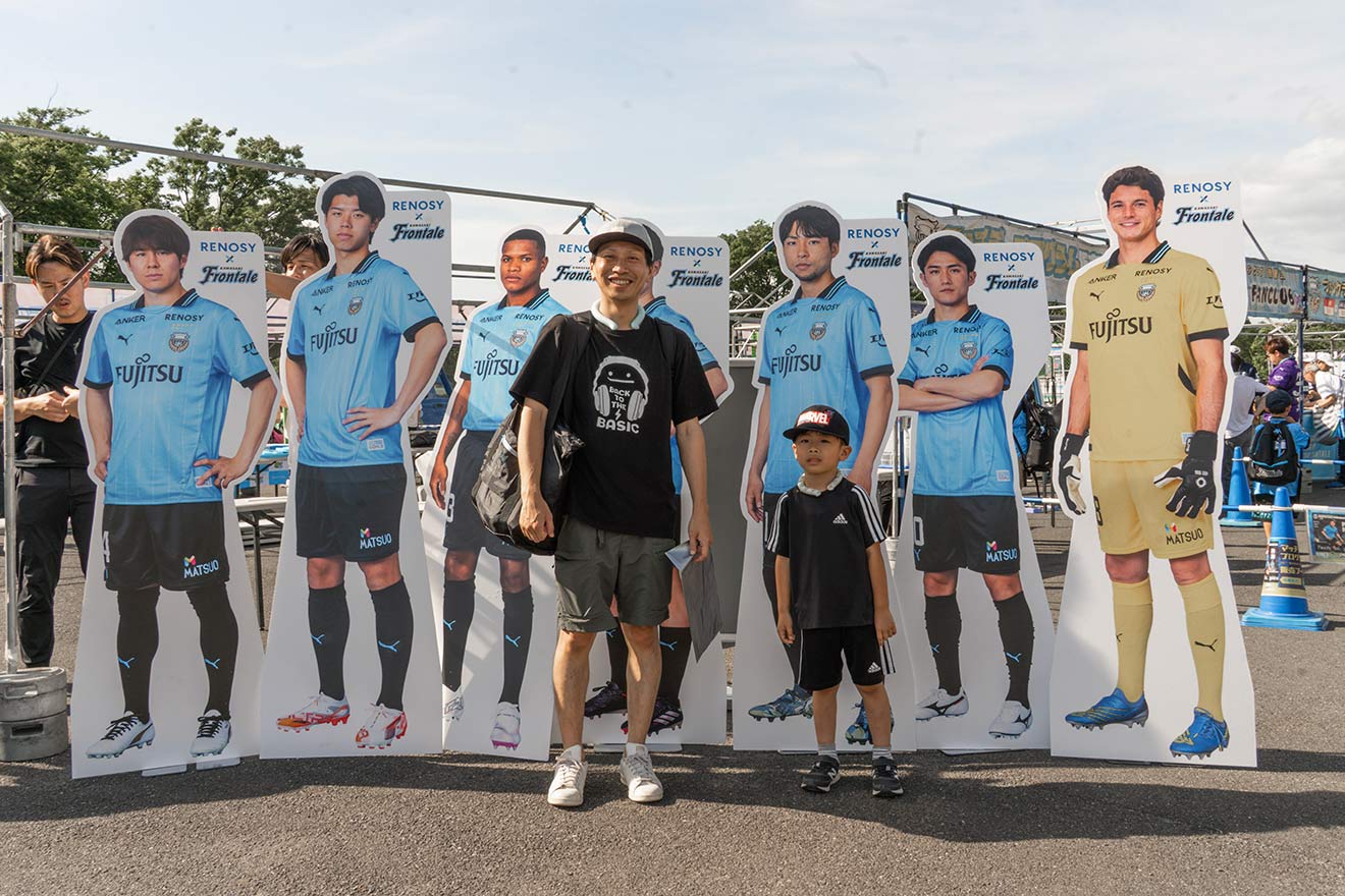 等身大パネル前で記念撮影を楽しむサポーターの方々