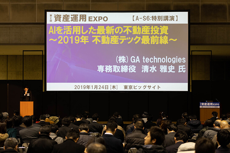 また、2日目も清水雅史によるGA technologiesのセミナー「AIを活用した最新の不動産投資 〜2019年 不動産テック最前線〜」を実施しました。2日目のセミナーにもたくさんの方にご参加いただきましてありがとうございました。
