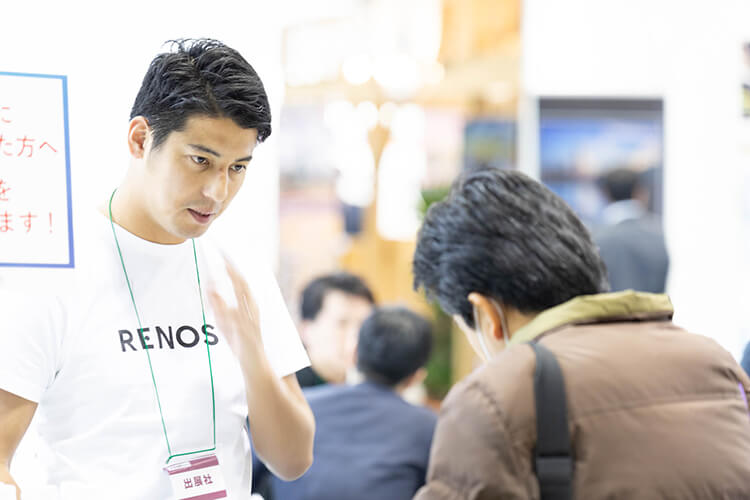 2日目は、ブースに「RENOSY」のロゴも登場しました。サービス名でご存知の方にも足を止めていただき、たくさんの方にご来場いただきました。