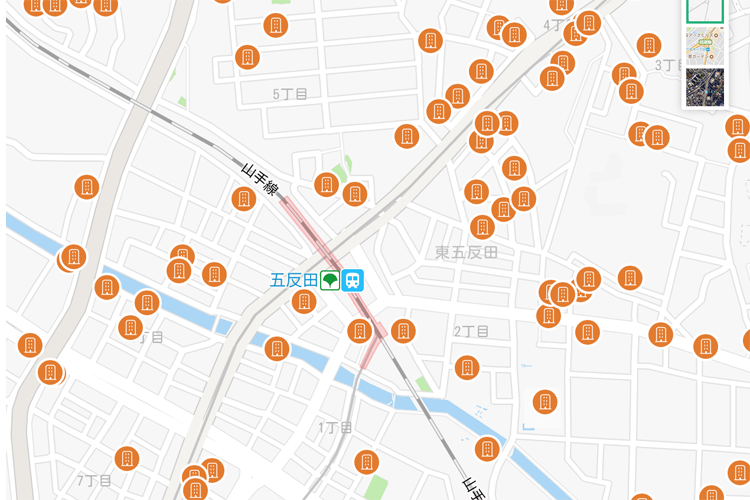 RENOSYでデータ検索してみると、五反田駅周辺には、賃貸マンションや中古マンションが数多く存在しています。やはりオフィスだけでなく住む場所としても狙い目です。
